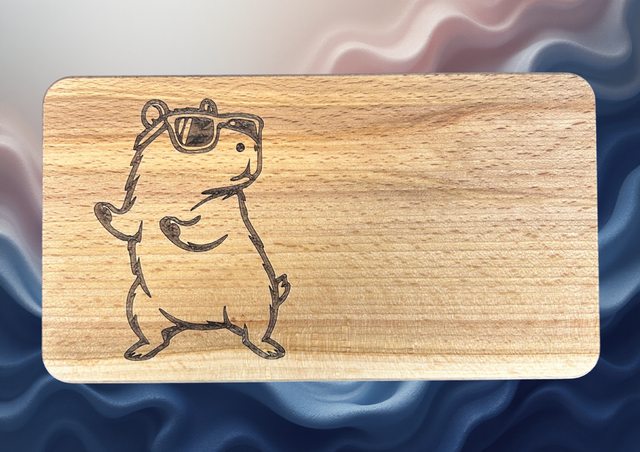Das Brett trägt die lustige Gravur eines tanzenden Capybara mit Sonnenbrille und ist ein perfektes Geschenk.